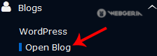 4. On the left side of your screen you should locate the "Blogs" category. Click on it and then click on the "OpenBlog" link that will appear.