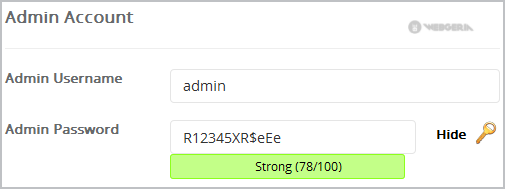 • Admin Username: Your new HTMLy username (for security reason do not use the "Administrator" or the "Admin" username.)