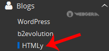 4. On the left side of your screen you should locate the "Blogs" category. Click on it and then click on the "HTMLy" link that will appear.