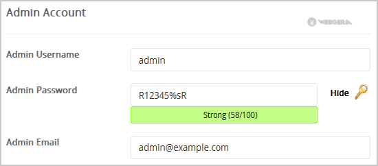 - Admin Username: Your new PyroCMS username (for security reason do not use the "Administrator" or the "Admin" username.)